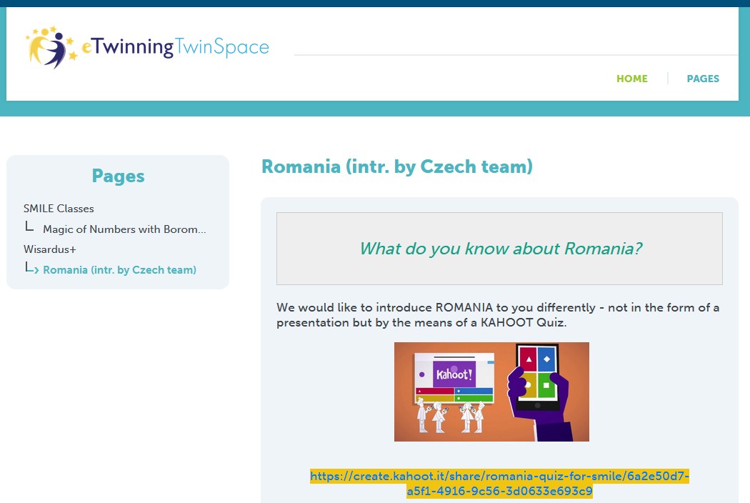 Součástí projektu byl i "Wizardus" (kouzelnická verze Erasmu) - žáci měli za úkol prezentovat jednu partnerskou zemi, např. český tým prezentoval Rumunsko pomocí společně vytvořeného Kahoot kvízu. (https://twinspace.etwinning.net/120503/pages/page/1163217).